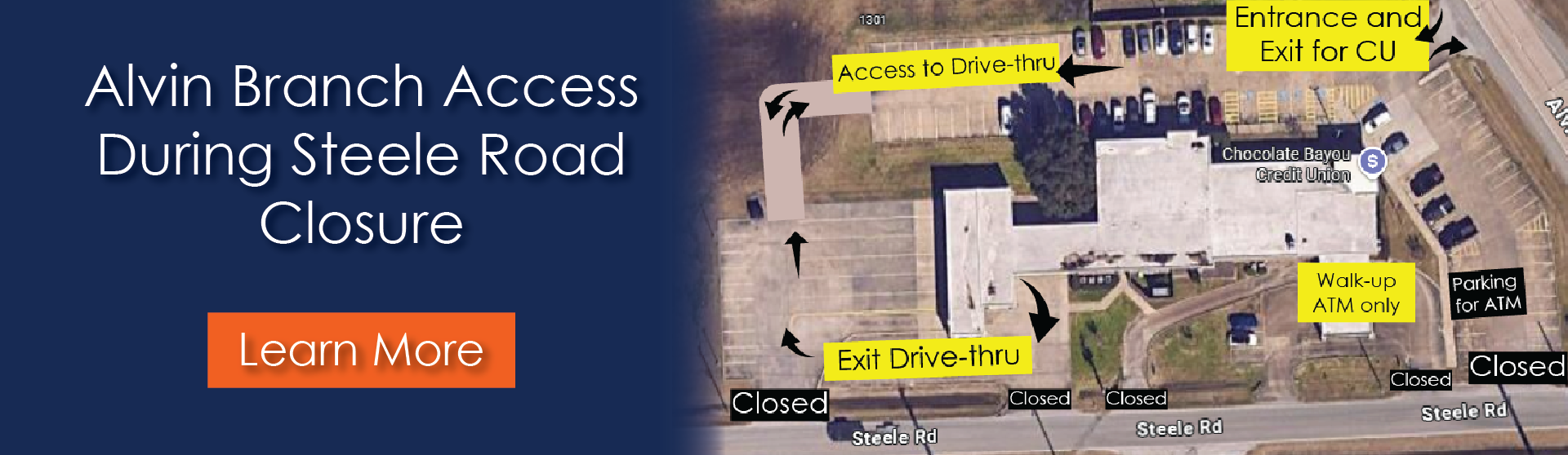 © 2025 Chocolate Bayou Community FCU. All rights reserved. Your deposits are federally insured to at least $250,000 and backed by the full faith and credit of the National Credit Union Administration, a U.S. Government agency. We do business in accordance with the Federal Fair Housing Law and the Equal Credit Opportunity Act. In compliance with the U.S.A. Patriot Act, we are required to obtain and verify identification provided for all new account owners and joint owners, using methods permitted by law.